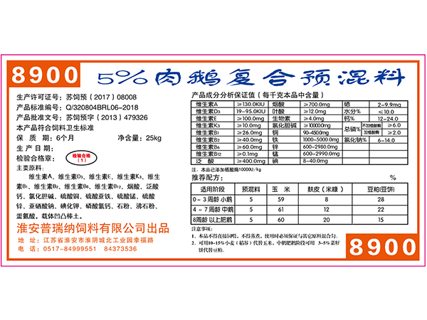 5%鵝用復(fù)合預(yù)混料
